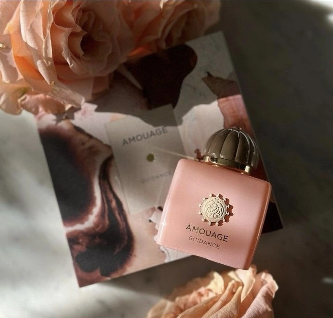 Guidance de Amouage es una fragancia de la familia olfativa Floral Frutal para Hombres y Mujeres. Guidance se lanzó en 2023. La Nariz detrás de esta fragrancia es Quentin Bisch. Las Notas de Salida son pera, avellana y incienso de olíbano (franquincienso); las Notas de Corazón son osmanto (olivo oloroso), rosa, azafrán y jazmín sambac (sampaguita); las Notas de Fondo son sándalo, vainilla, Akigalawood, ámbar gris y ládano.